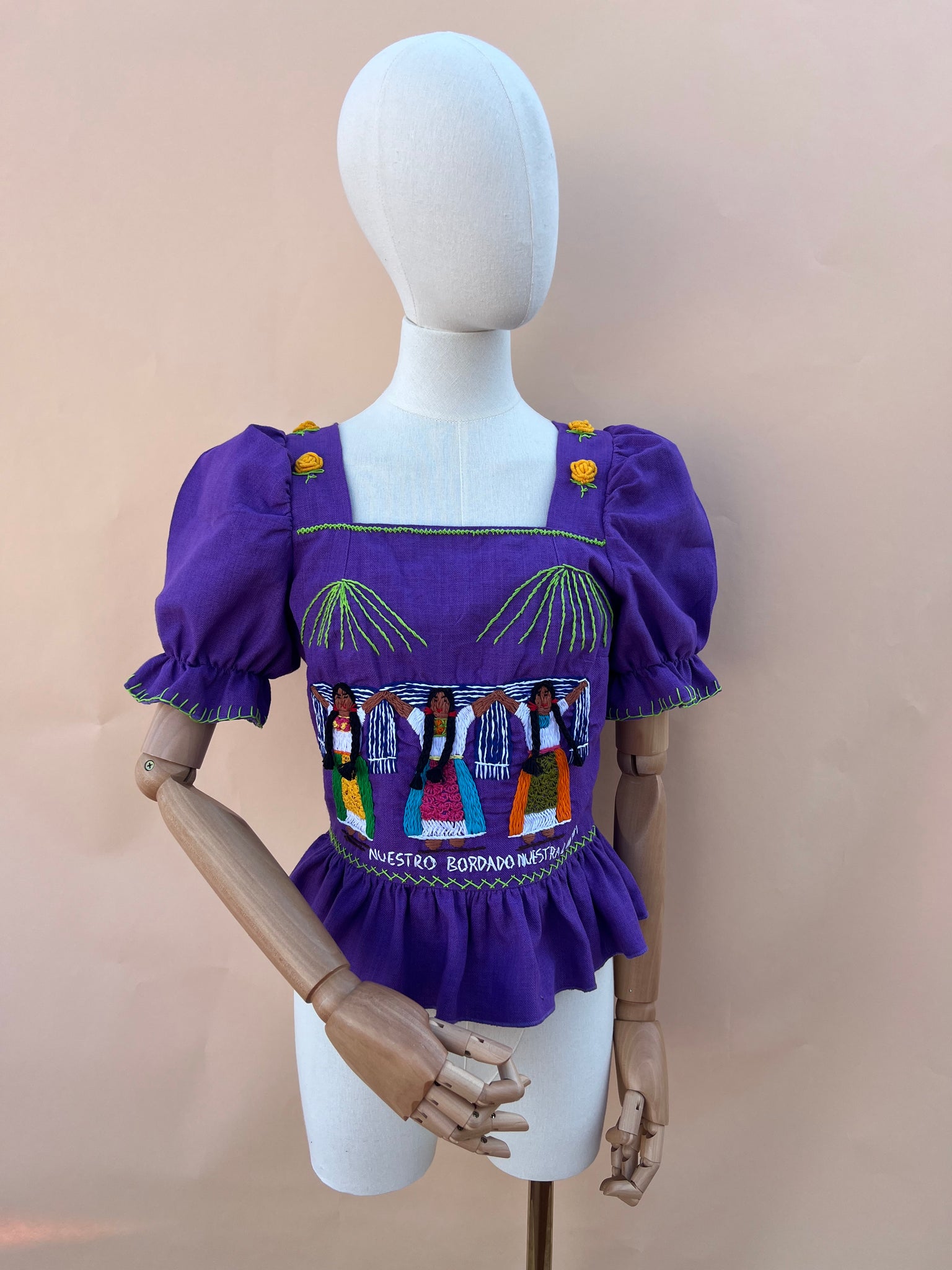- Bordado 100% a mano, narrando una historia en cada puntada.