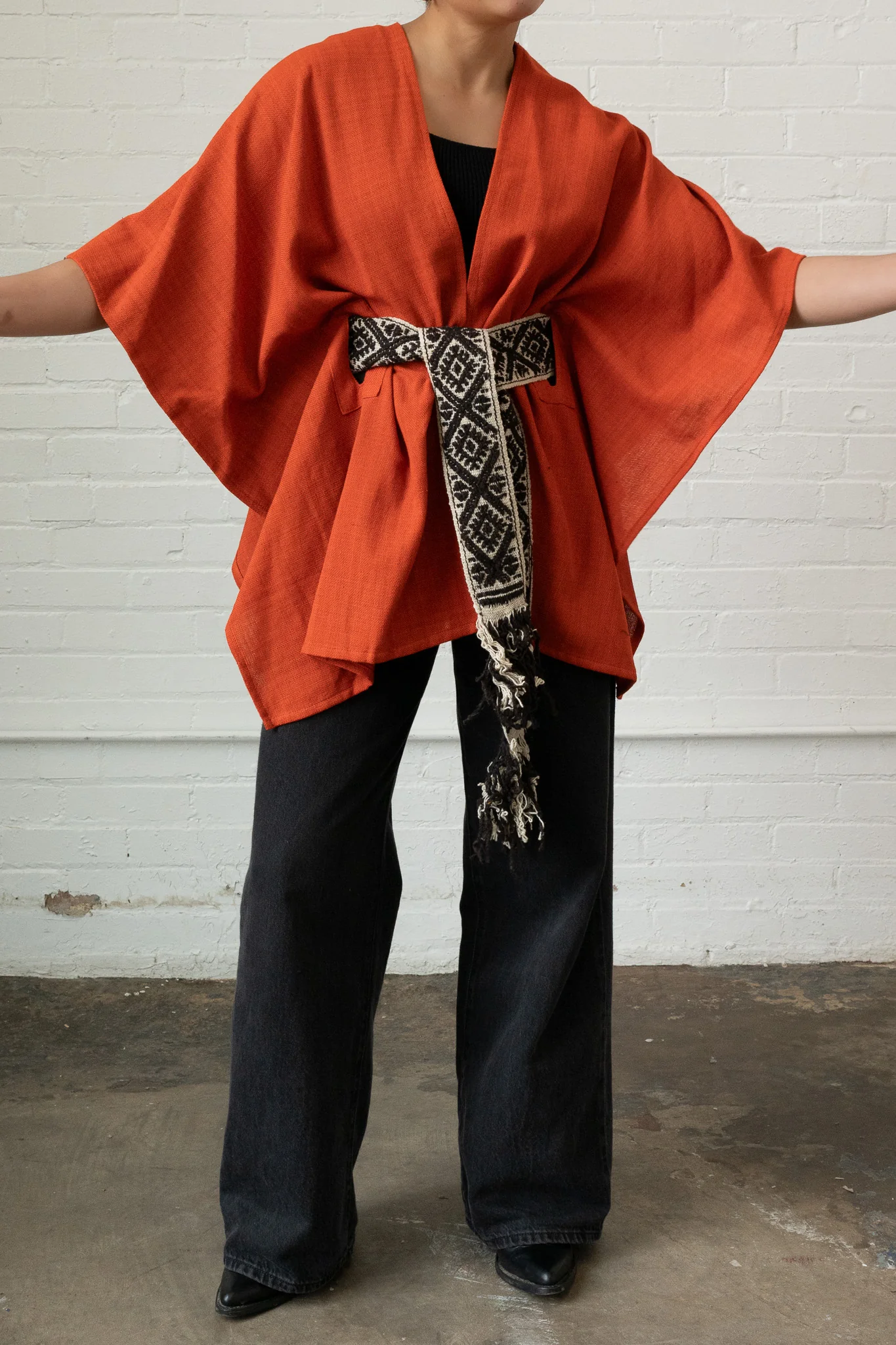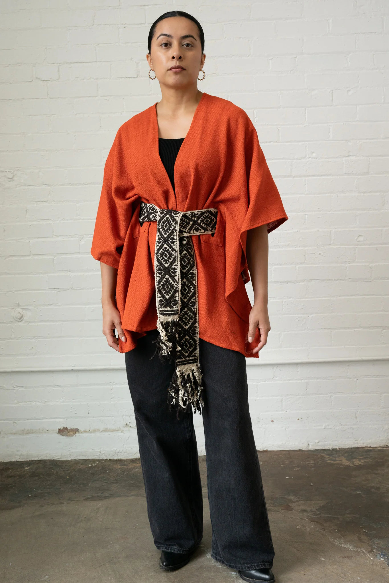 Capa en telar de pedal de 100% algodón con fajo en telar de cintura de lana.