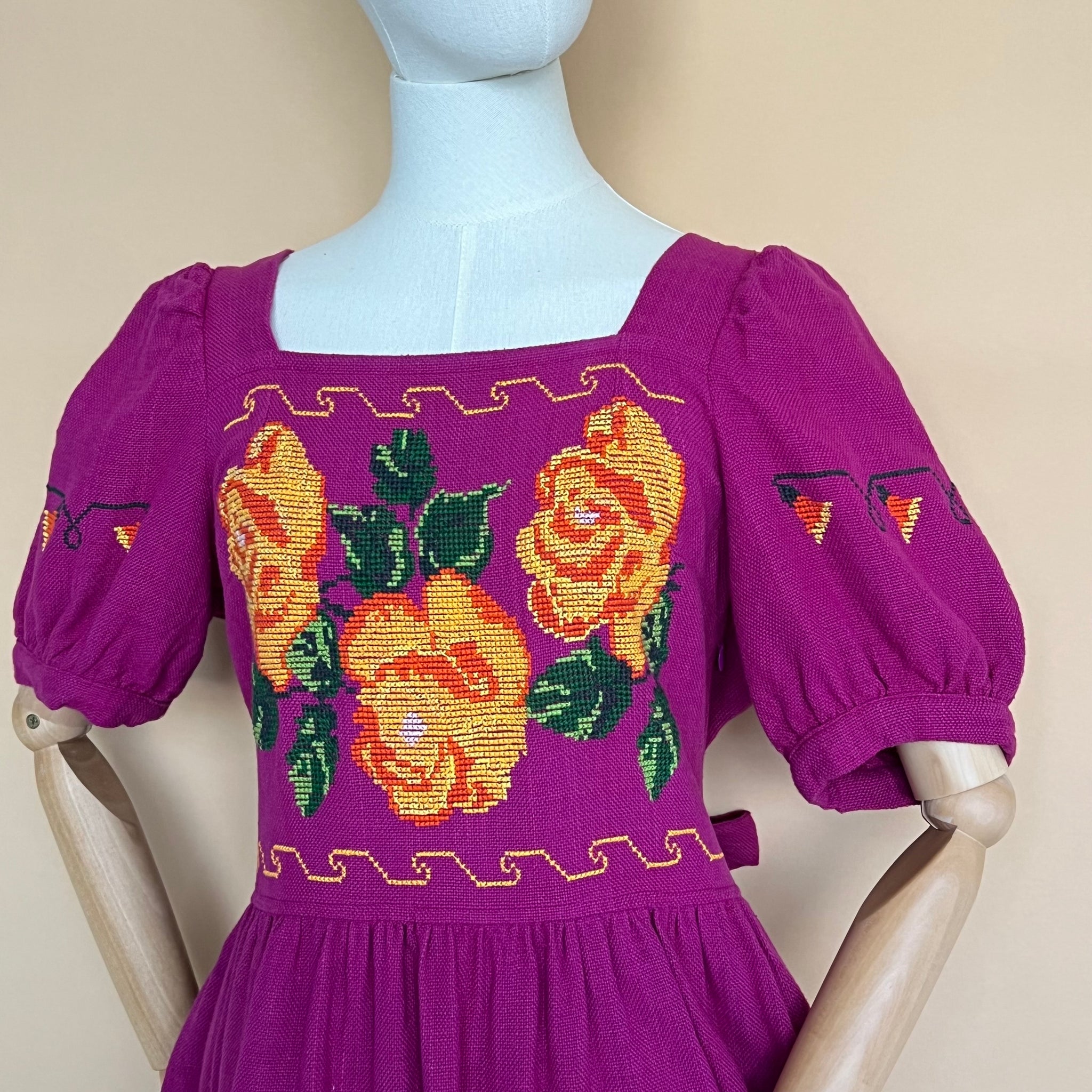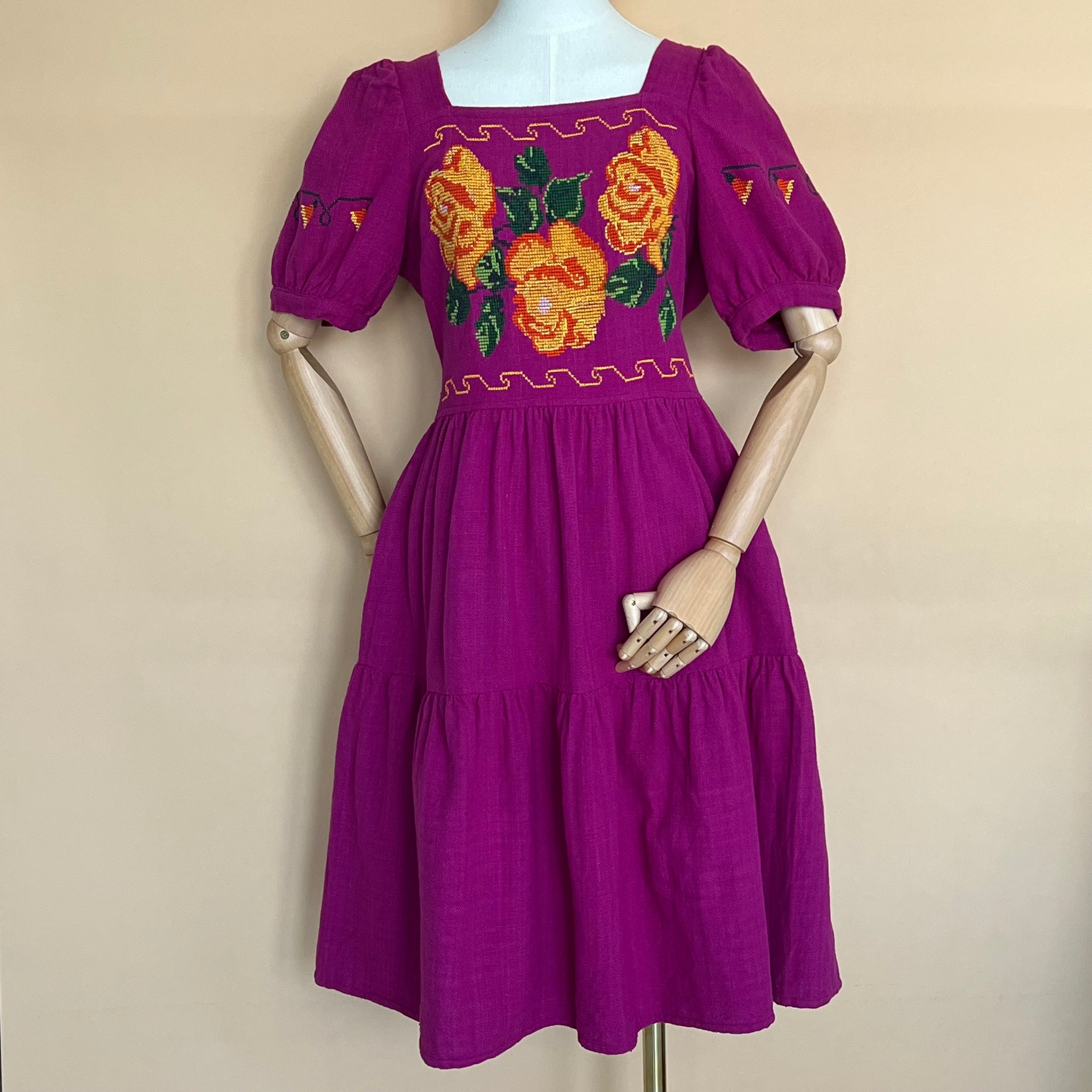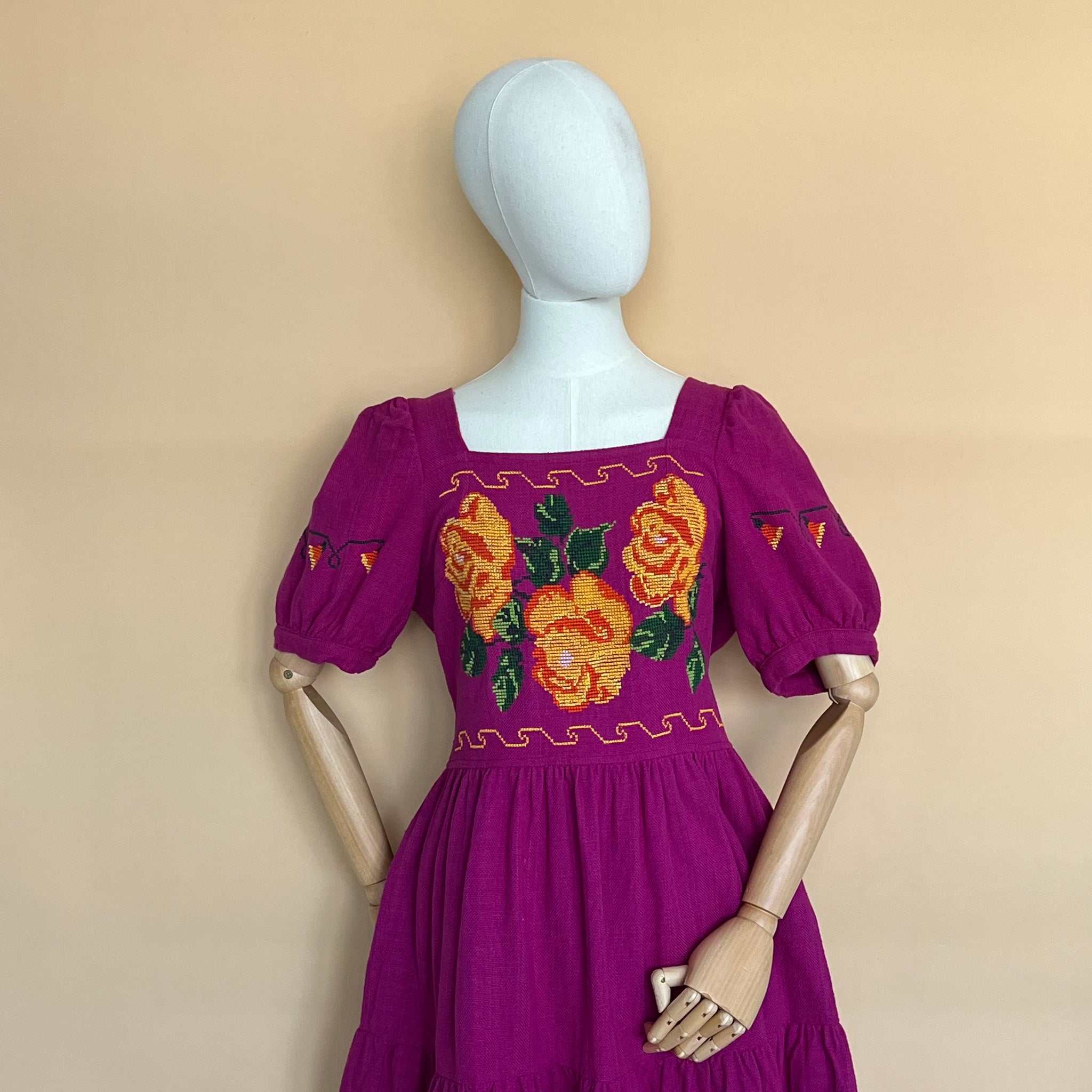 Vestido michoacano en telar de pedal con bordado en punto de cruz por artesanas de la sierra michoacana. 100% arte purépecha.