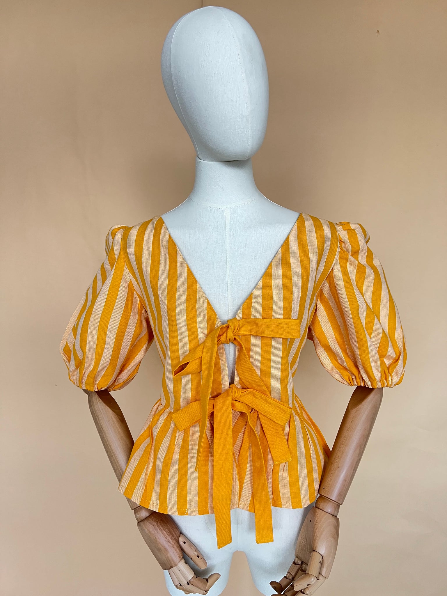 Top michoacano en manta artesanal que hace honor al color del cempasúchil.