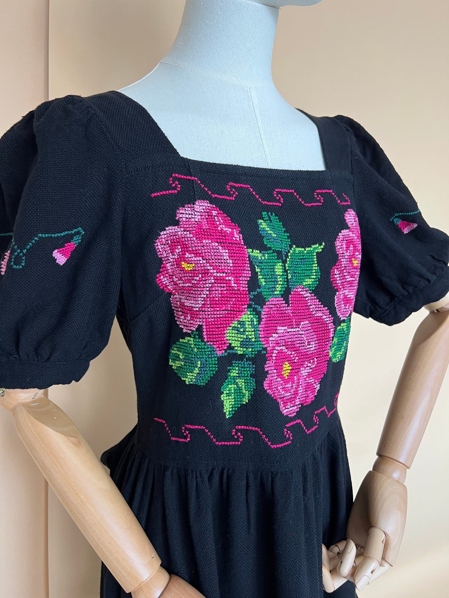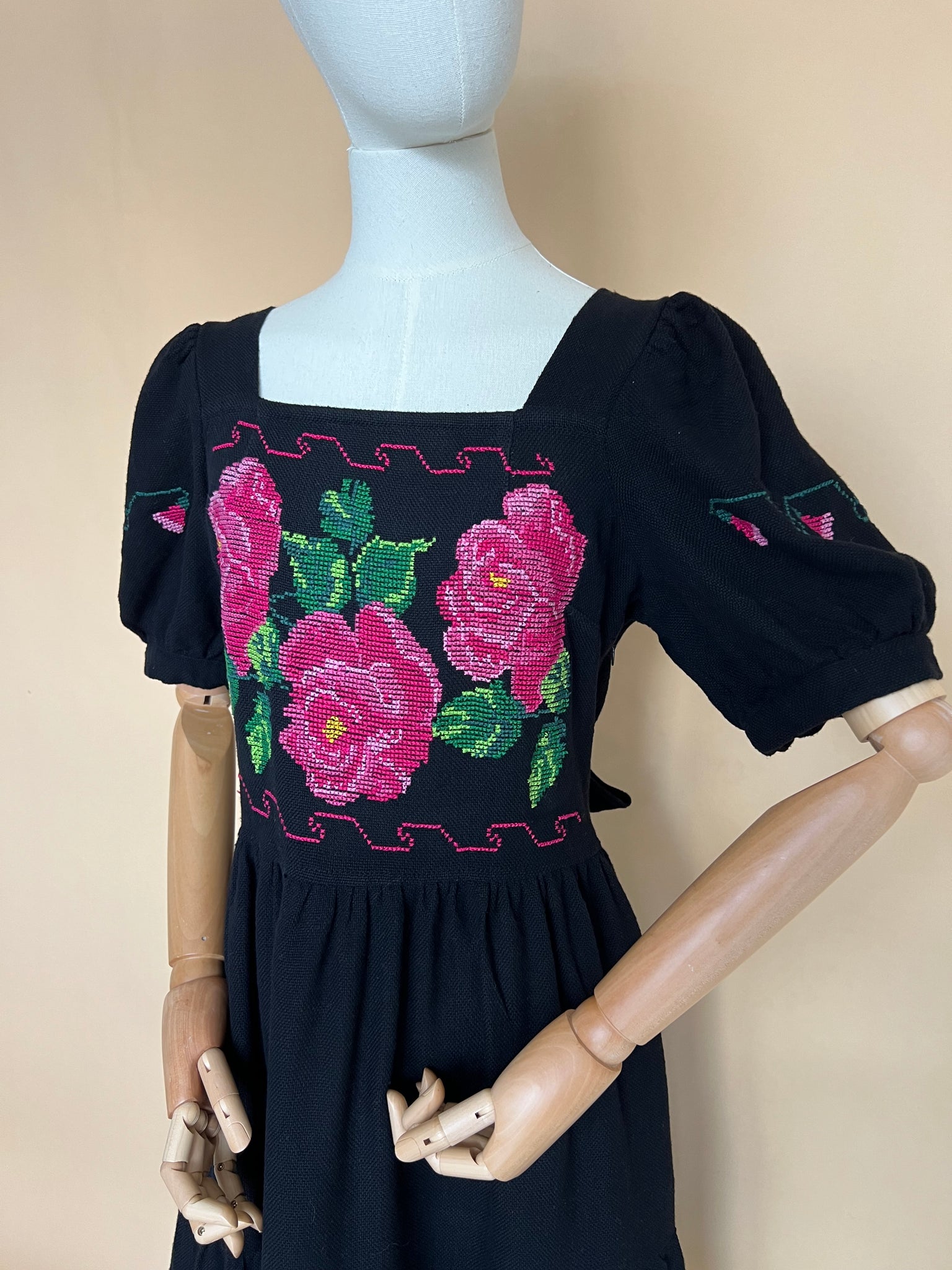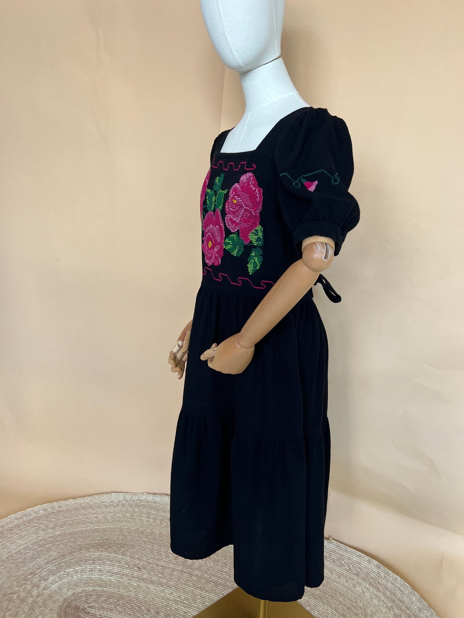Vestido michoacano en telar de pedal con bordado en punto de cruz por artesanas de la sierra michoacana. 100% arte purépecha.